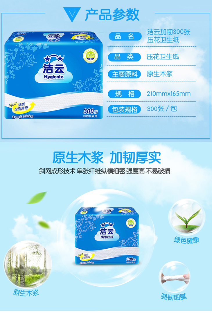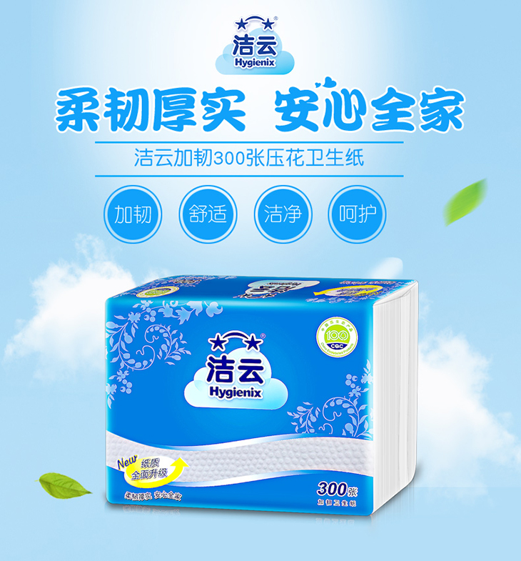 洁云H10200101加韧300张压花卫生纸
